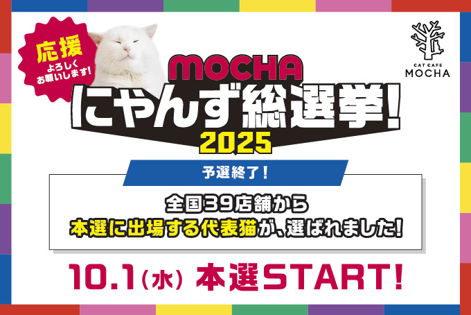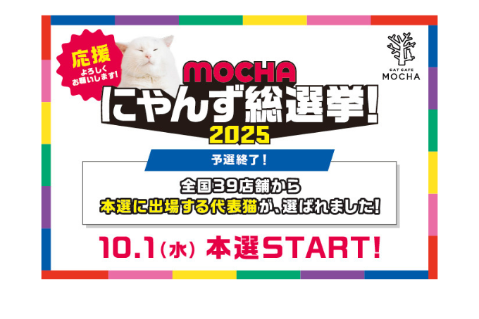 2025年9月25日(水)に予選となる各店舗総選挙の結果を発表し、2025年10月1日(水)より、「MOCHAにゃんず総選挙2025」本選投票をスタートいたします。