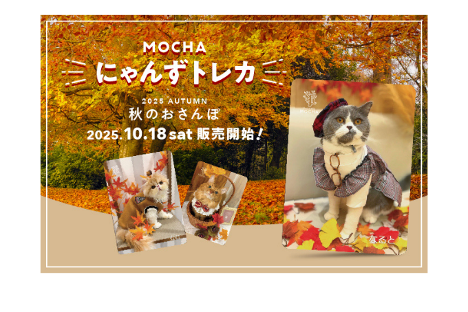 MOCHAにゃんずトレカ 〜2025 Autumn〜 秋のおさんぽ』を、2025年10月18日(土)より全国の猫カフェMOCHA全35店舗にて販売開始いたします。