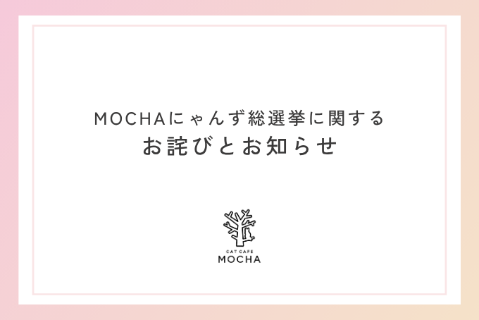現在開催中の「MOCHAにゃんず総選挙2025」のWEB投票におきまして、運営上のシステムおよびルール整備に不十分な点があることが判明いたしました。