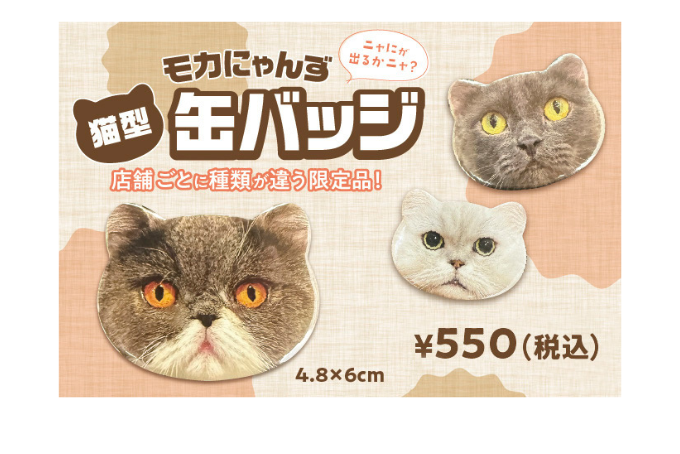 2025年11月1日(土)より、MOCHAの人気猫たちがデザインされた缶バッジ『モカにゃんず缶バッジ 〜vol.1〜』を全国23店舗で販売開始いたします。