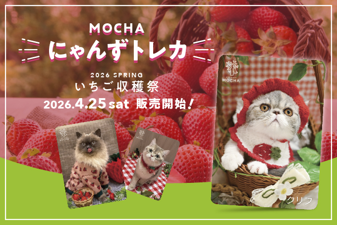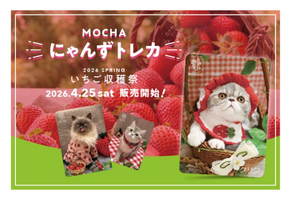 大人気オリジナルアイテムの最新作『MOCHAにゃんずトレカ〜2026 Spring〜いちご収穫祭』を、2026年4月25日(土)より全国の猫カフェMOCHA全36店舗にて販売開始いたします。