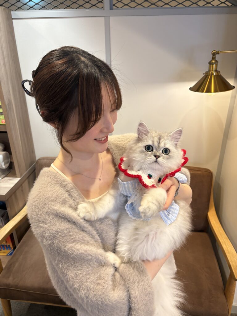 - 特別な記念撮影体験(当たり券特典) パック内に“当たり券”が封入されていた方には、トレカの撮影時に実際に使用した衣装を猫ちゃんに着用してもらい、「抱っこ&記念撮影」ができる特別な体験をご提供します。